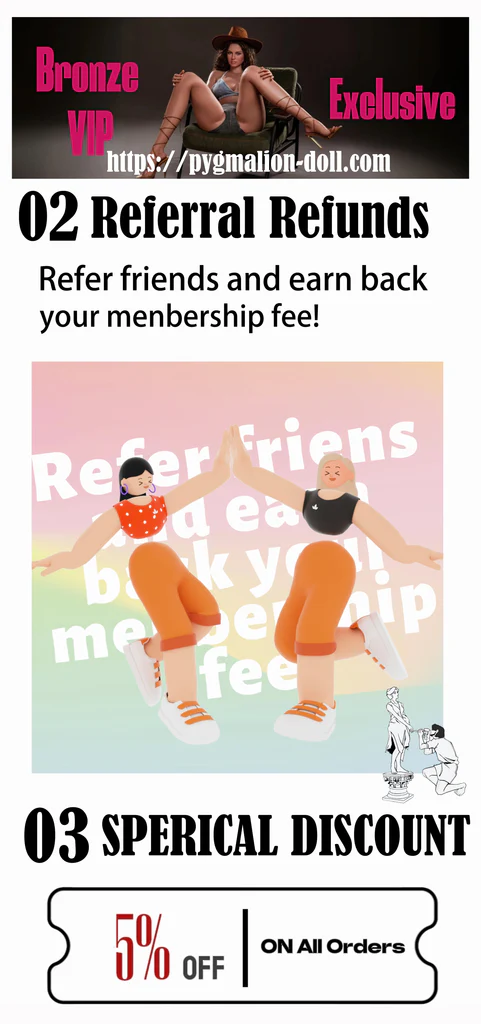 At Pygmalion Doll, we believe in offering more than just high-quality products – we want to give our customersan experience. That’s why we’ve created a tiered membership program that rewards you with exclusive gifts,discounts, and referral benefits. Let’s take a closer look at the four levels of membership: